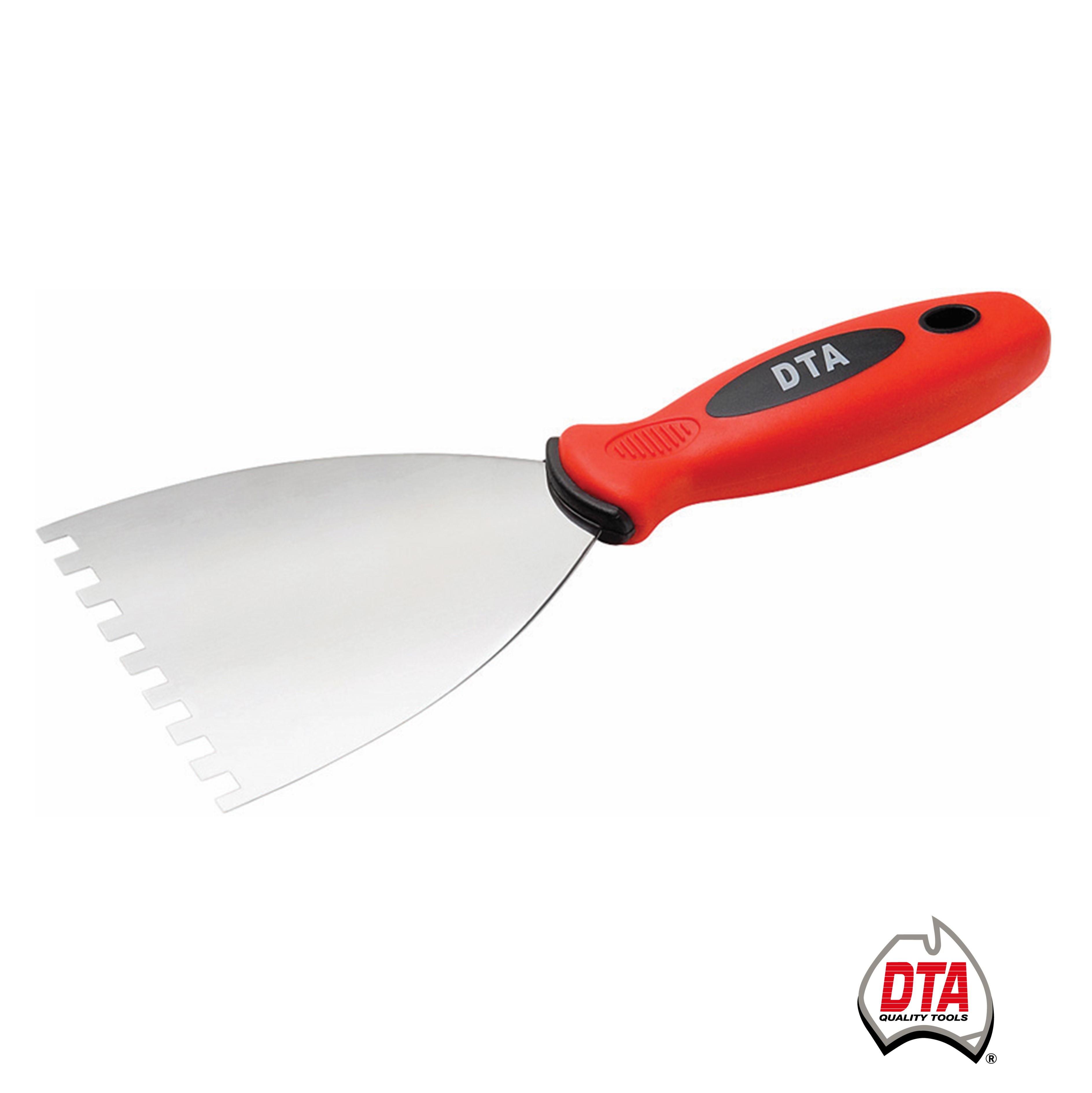 • • Strengthened steel square notched scraping edge for wall tiles