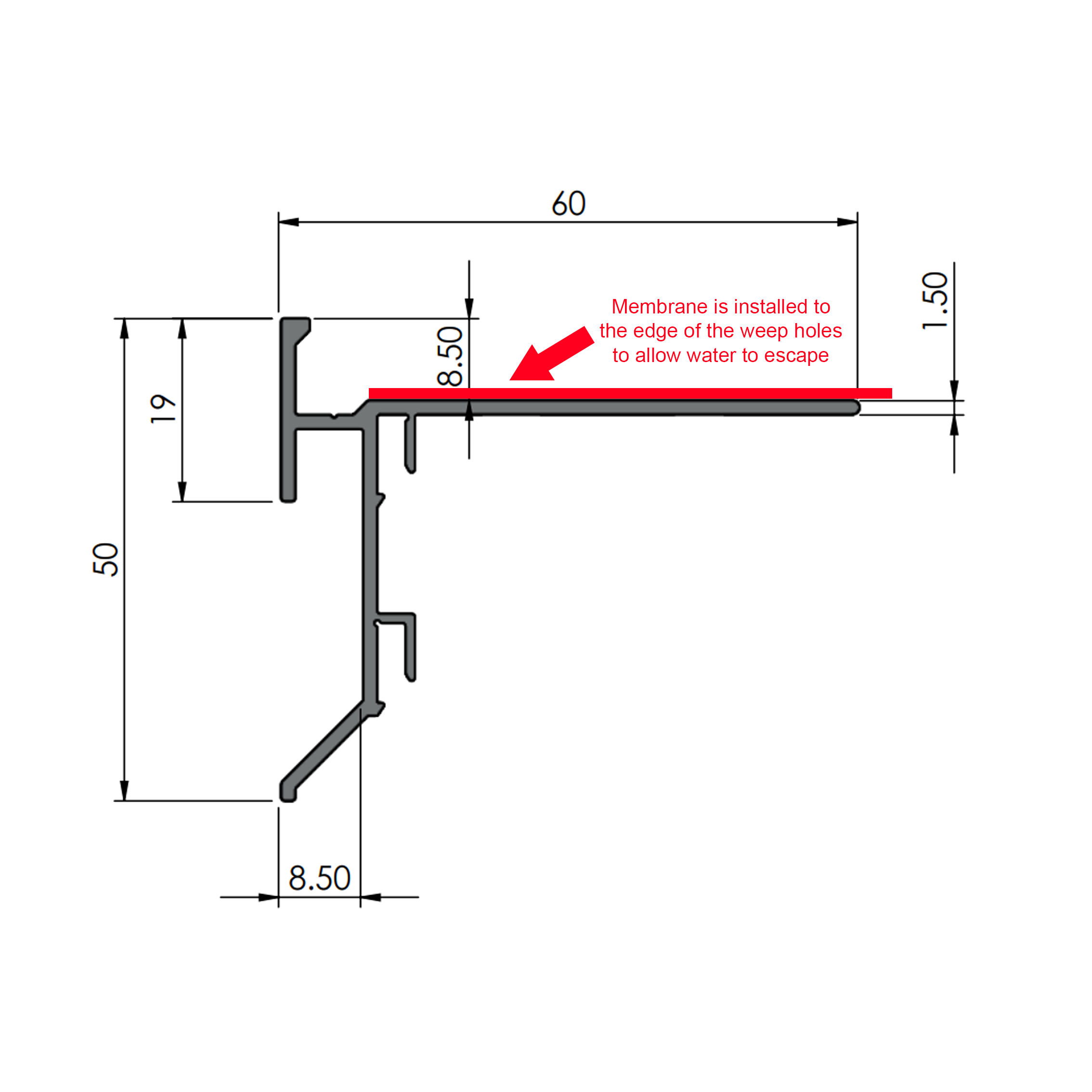 • • Weep holes are located every 300mm