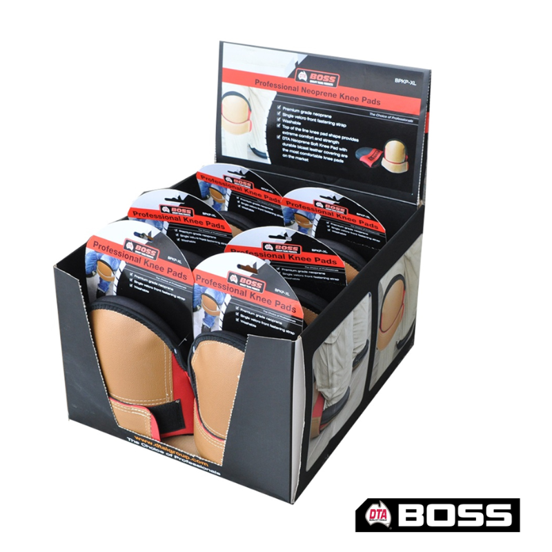 BOSS NEOPRENE LEATHERETTE KNEE PADS X-LARGE DISPLAY CARTON OF 6 PAIRS